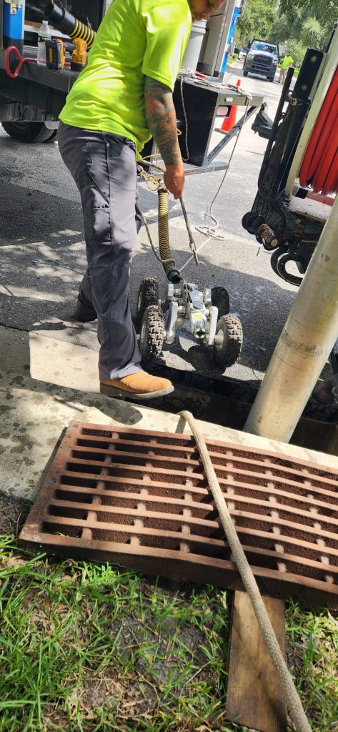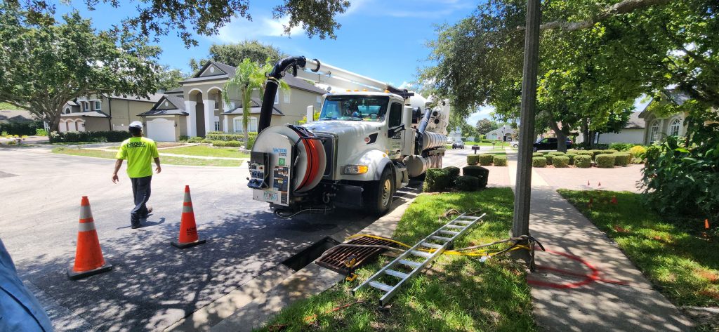 ProVac continues to clean the collapsed drain pipe in preparation for replacement of the crushed section of pipe. A large amount of dirt is being removed from the drain pipe. Some of the other pipes leading down Windermere Chase Blvd. have been checked with a camera. A mix of plastic and concrete pipes were found. Cracks and water intrusions have been noted in these pipes as well.