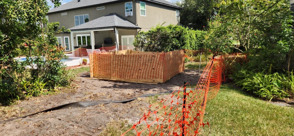 On July 11 deep hole suddenly appeared, and we now know the cause is a 42″ drain pipe that collapsed between two homes. The hole is approximately 9′ deep and has been fenced off for the safety of neighbors and pets. The hole is approximately 15 feet from a house and 12 feet from a pool. The drain starts at the north end of Huntsville Road and drains y 1/3 of the community into our north drainage pond.