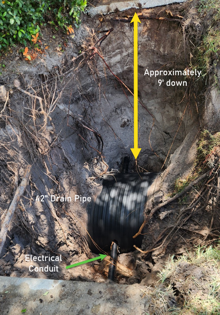 After communicating with Duke Energy about the conduit and powerline piercing our drain, Duke teams reviewed the situation and determine how to address the issue and resolve the situation.