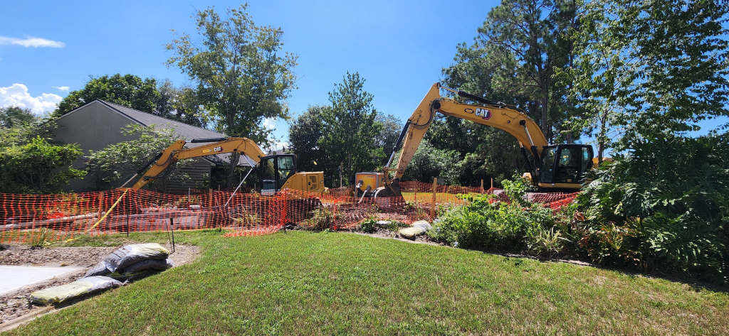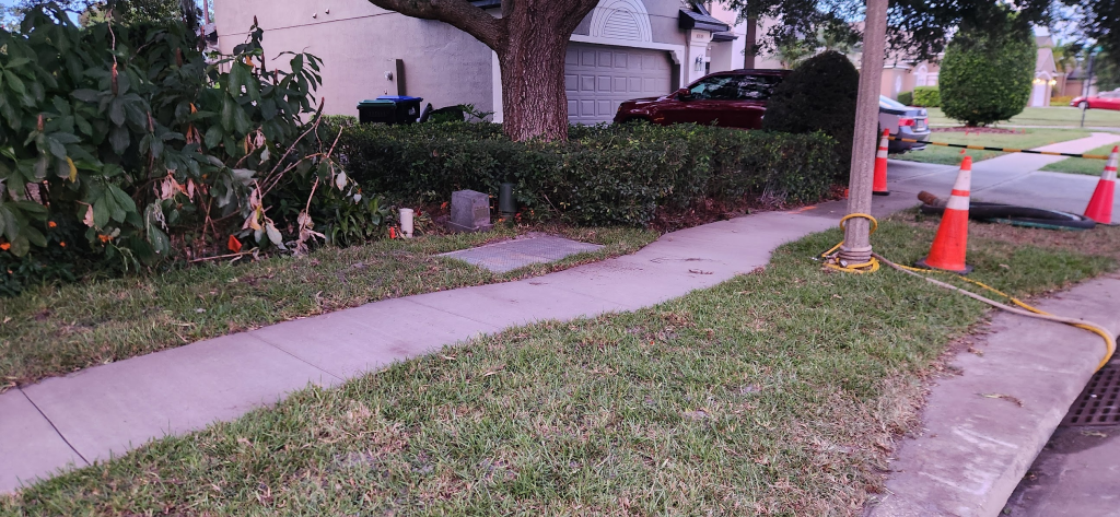 Last week Duke completed the process of digging down to the pierced drain pipe, severing the powerline, and connecting it in a new vault next to the sidewalk. Repairs and 7 truckloads of dirt were inserted in the hole after preparing the drain pipe to prevent dirt from entering the holes left by the powerline conduit.